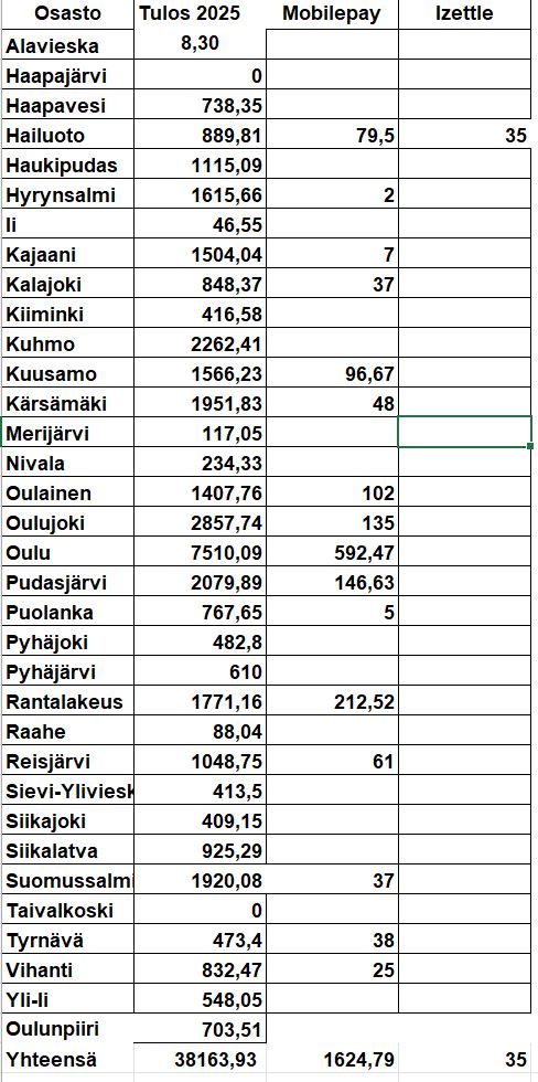 Alla olevasta taulukosta näet vuoden 2023 Oulun piirin osastojen Nälkäpäivän keräystulokset.